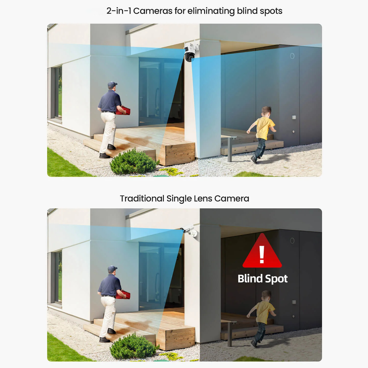 • Stable WiFi Connection: The dual-lens security camera offers flexibility with 2.4 GHz WiFi frequencies, ensuring a stable and fast connection.