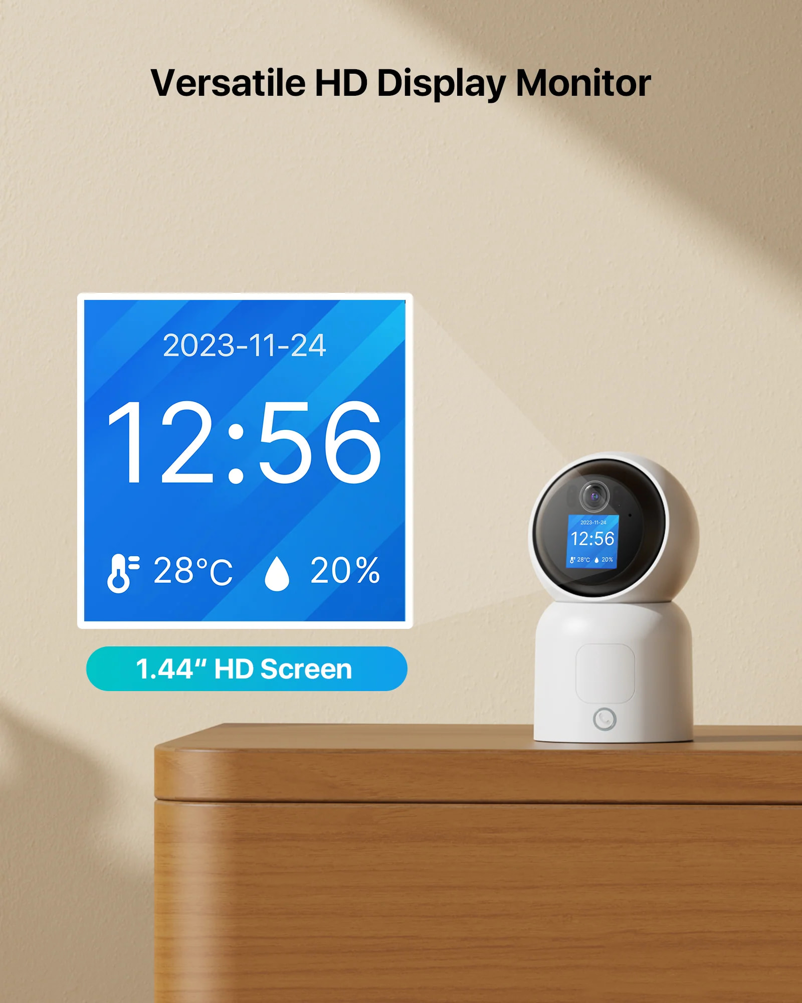 • Night Vision: The indoor camera seamlessly transitions to night vision mode by automatically adjusting to changes in surrounding lighting conditions. Equipped with built-in infrared lights, it ensures excellent visibility and clarity even in dark environments.