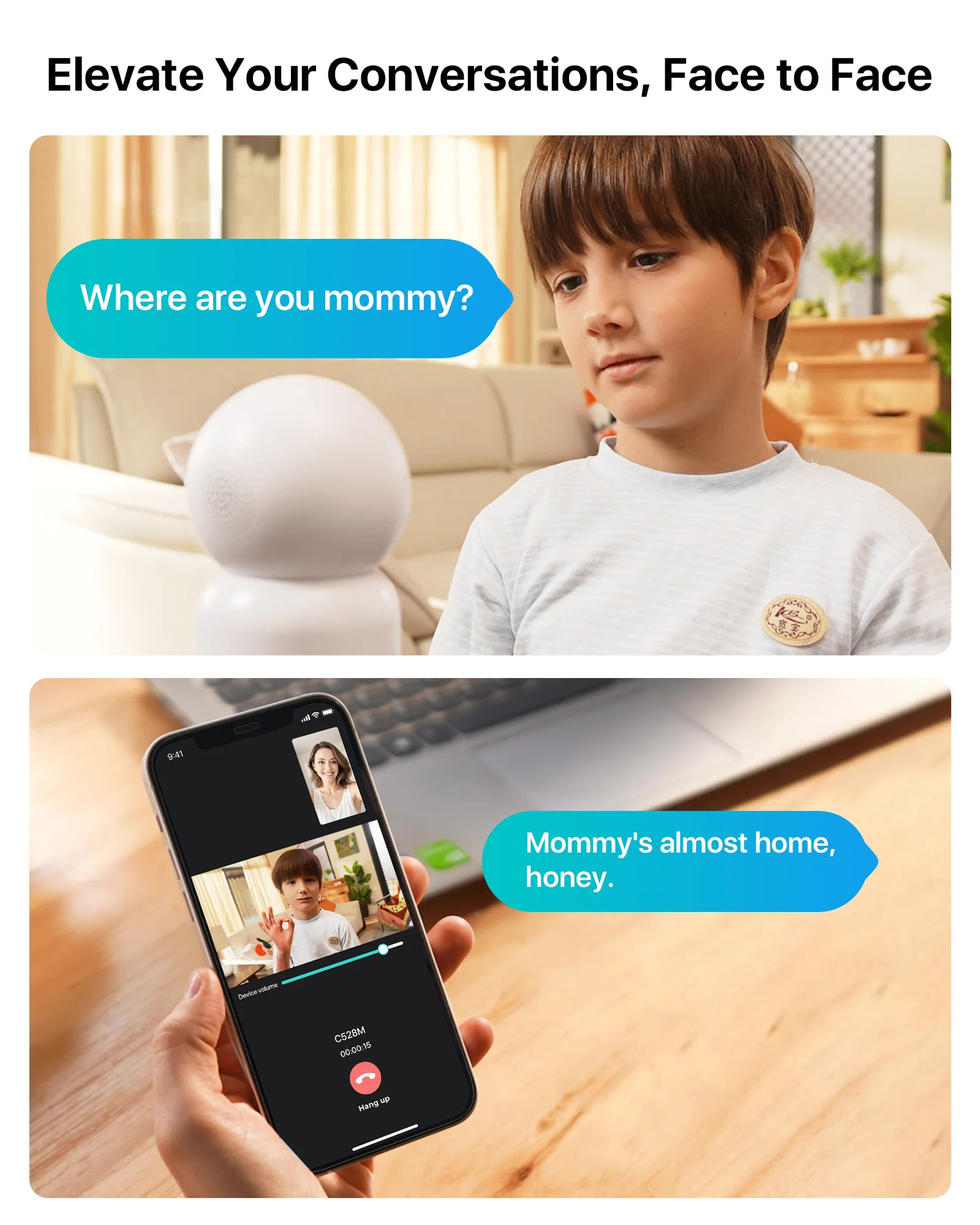 Two-Way Video & Gesture Calling: By using the call button or OK gesture, direct communication can be established through the app. Receive a real-time video call from your family members in the app as soon as your children or elderly press the call button on this Wi-Fi camera or make an OK gesture in front of the lens.